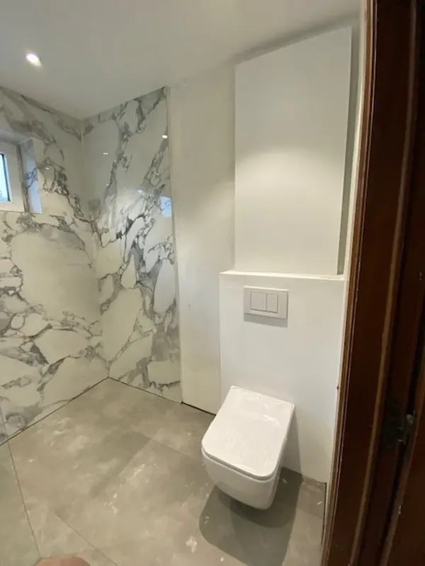 Droom je van een badkamer die luxe en rust uitstraalt? Met een badkamerrenovatie in marmerlook brengen wij stijl, klasse en duurzaamheid samen in één verfijnd ontwerp.